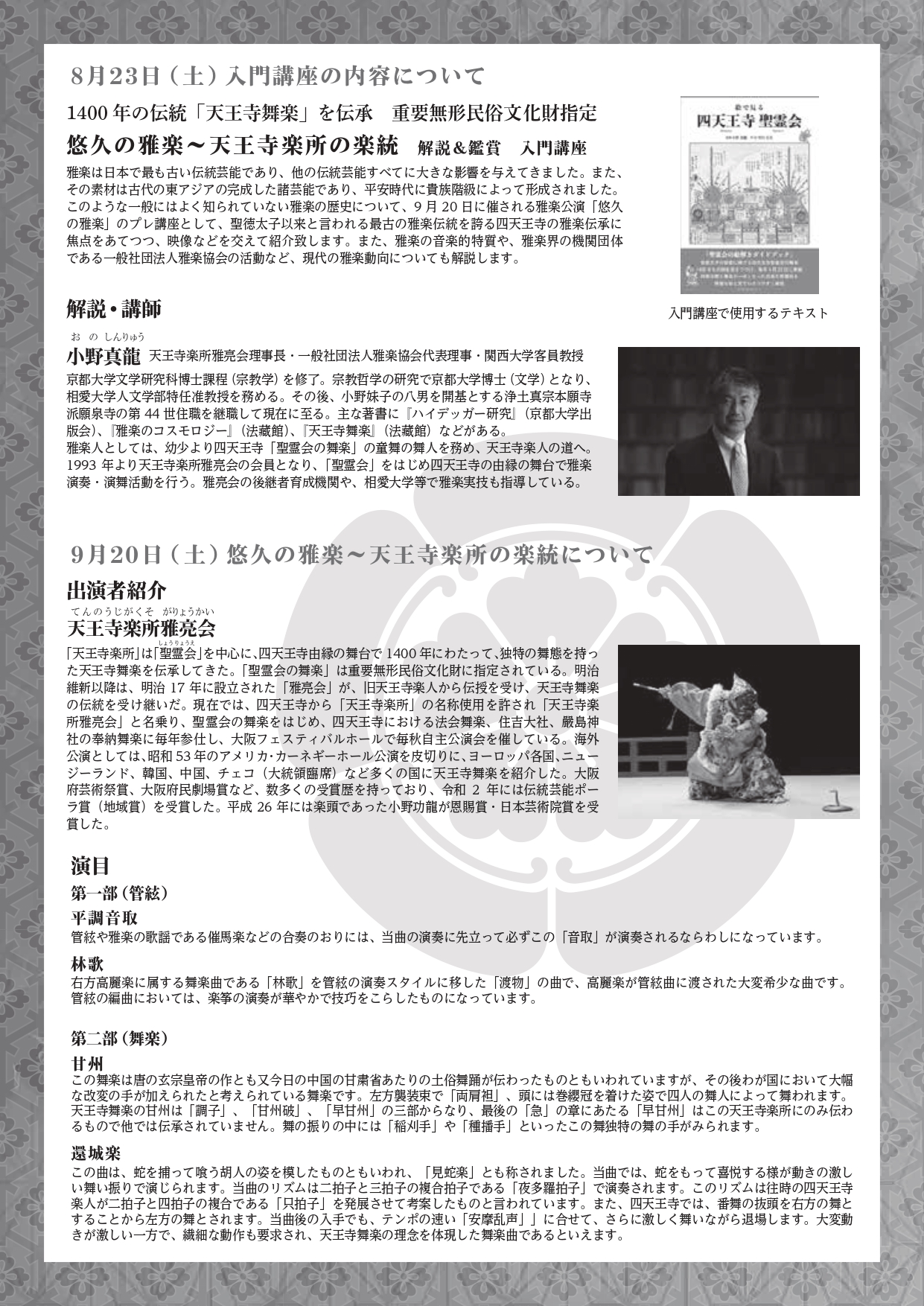 雅楽・舞楽コンサート~天王寺楽所雅亮会の楽統「悠久の雅楽」